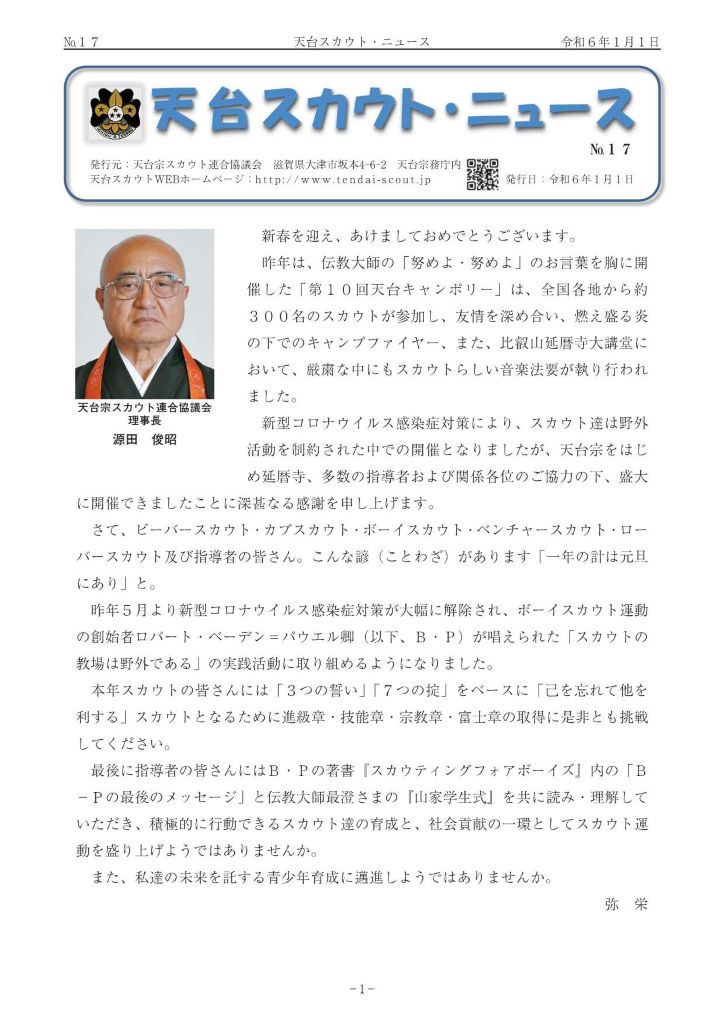 年一回の間隔で発行している天台宗スカウト連合協議会の広報誌『天台スカウトニュース』のご紹介です。